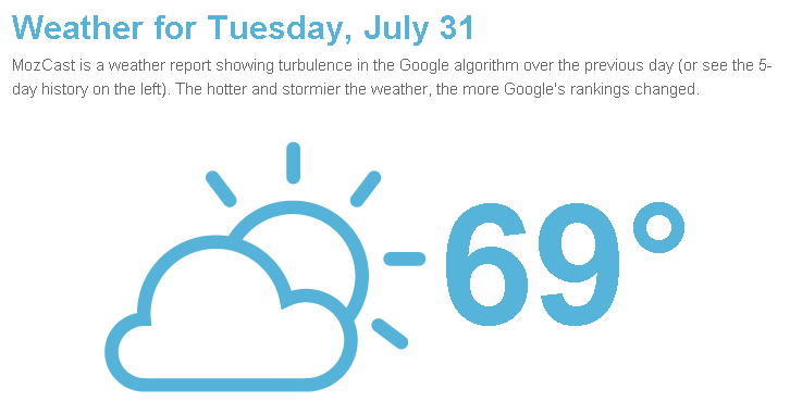 SEOmoz浜?鏈?6涓婄嚎浜唌ozcast錛坢ozcast.com錛夛紝Mozcast綺懼績鎸戦変簡1000涓叧閿瓧錛岀劧鍚庢姄鍙栬嚜鐒舵帓鍚嶅墠鍗佺殑緇撴灉錛岄氳繃瀵硅繖浜涙暟鎹殑鐩戞帶鏉ヨ揪鍒板鎼滅儲寮曟搸綆楁硶鏀瑰彉鐨勯嫻嬨侻ozcast褰㈣薄鐨勯氳繃澶╂皵鐨勯槾鏅存潵琛ㄧずGoogle綆楁硶鏇存柊鐨勫箙搴︼紝濡備笅鍥炬墍紺猴細(xì)