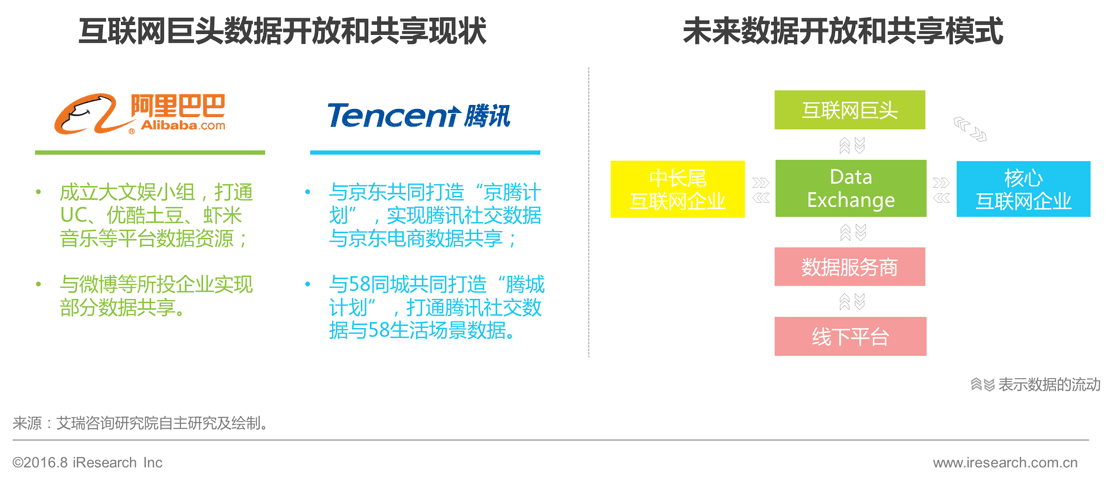 1Q互联网巨头凭借完善的账号体系和全面的业务覆盖Q拥有着最Z富的U上数据Q线上数据的开攑ְ首先在互联网巨头与各自核心伙伴之间展开Q经q脱敏处理的非核心数据,也有可能向营销服务商等营销产业链上下游有限制地开放;2Q中及(qing)长尾q_的数据将通过相对独立的Data ExchangeQ第三方数据交易q_Q实现共享,DataExchangeh一定的成长I间Q?Q线下数据的开放也逐步具备条gQ由于线下^台缺数据处理能力,围绕着U下数据的利用和׃n生一Ҏ(gu)据服务商?/P>