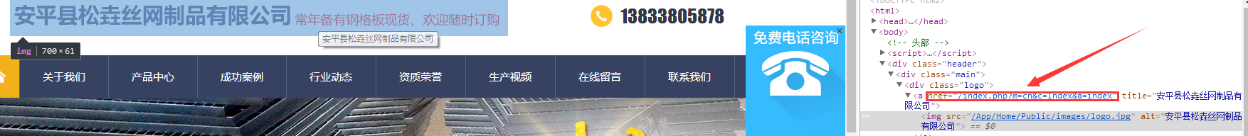 網(wǎng)站頭部logo里面包含了一個(gè)鏈接雖然點(diǎn)擊是首頁(yè)的但是網(wǎng)址卻不是,這個(gè)地方為了不造成影響我們將這個(gè)鏈接修改為正確的網(wǎng)址即可