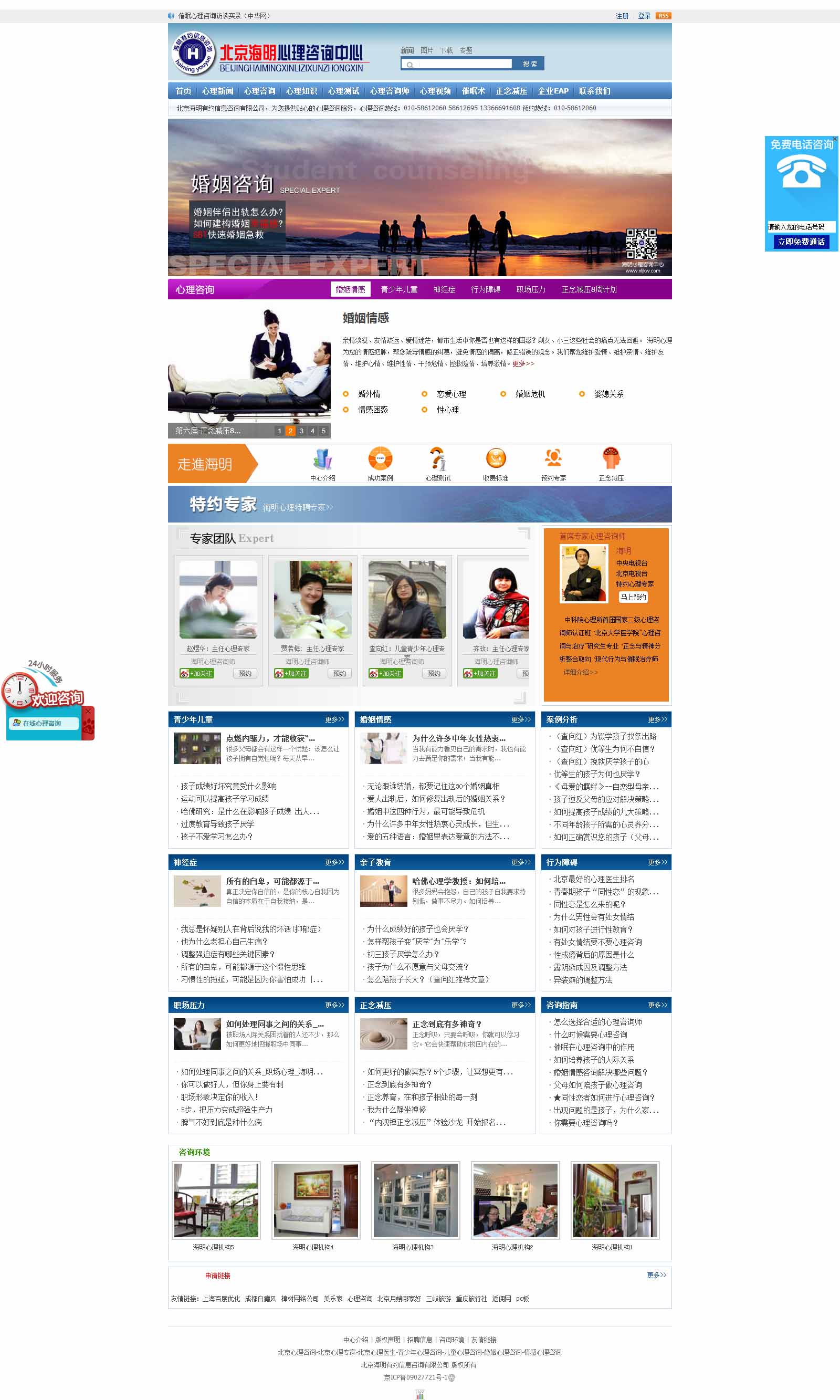 北京海明有約信息咨詢有限公司,創(chuàng)辦于2005年,是國內(nèi)十大知名心理咨詢機(jī)構(gòu), 擁有各大主流學(xué)派的知名心理專家數(shù)十名,主要咨詢項(xiàng)目包括:婚戀情感咨詢、婚姻家庭咨詢、親子關(guān) 系與兒童青少年成長咨詢、職業(yè)發(fā)展與人際關(guān)系咨詢、神經(jīng)癥(如抑郁、焦慮、恐懼、強(qiáng)迫等)、壓力管 理問題咨詢、失眠和性心理障礙、創(chuàng)傷咨詢及危機(jī)干預(yù)等效果顯著。主要咨詢方式:一對(duì)一的面對(duì)面咨詢 ,遠(yuǎn)程網(wǎng)絡(luò)音頻視頻咨詢,電話咨詢等方式?!?STRONG>