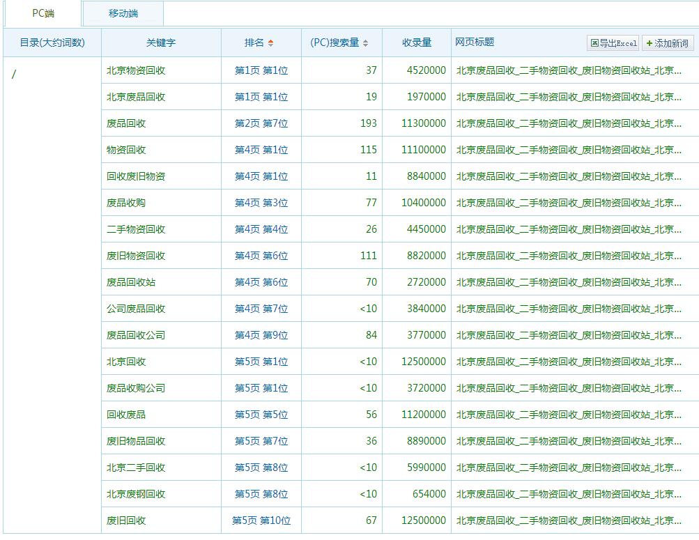 云無限網(wǎng)站優(yōu)化師前段時間接到一個客戶的關(guān)鍵詞優(yōu)化工作,客戶給出的關(guān)鍵詞分別為:北京物資回收,北京廢品回收,北京奇葩廢品回收公司!當時網(wǎng)站剛剛做好,但是并沒有上線!接下來網(wǎng)站優(yōu)化師就為您分享一下如何從一個新站入手,開始優(yōu)化的!