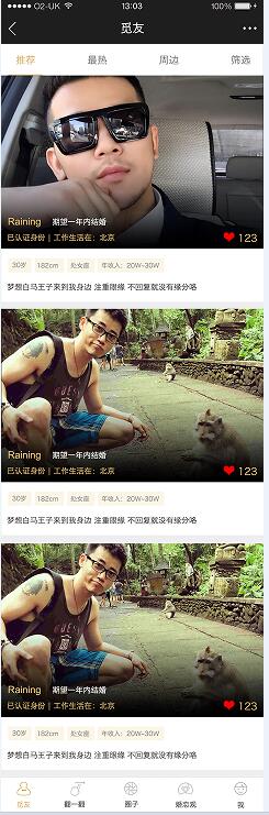 覓友定位于健康、真實、純凈、高品位的真誠覓緣活動,在這里,你可以知道身邊有哪些人喜歡你、有哪些豐富多彩的活動正在舉辦,趕快與您身邊的朋友一起報名參加戶外活動吧?