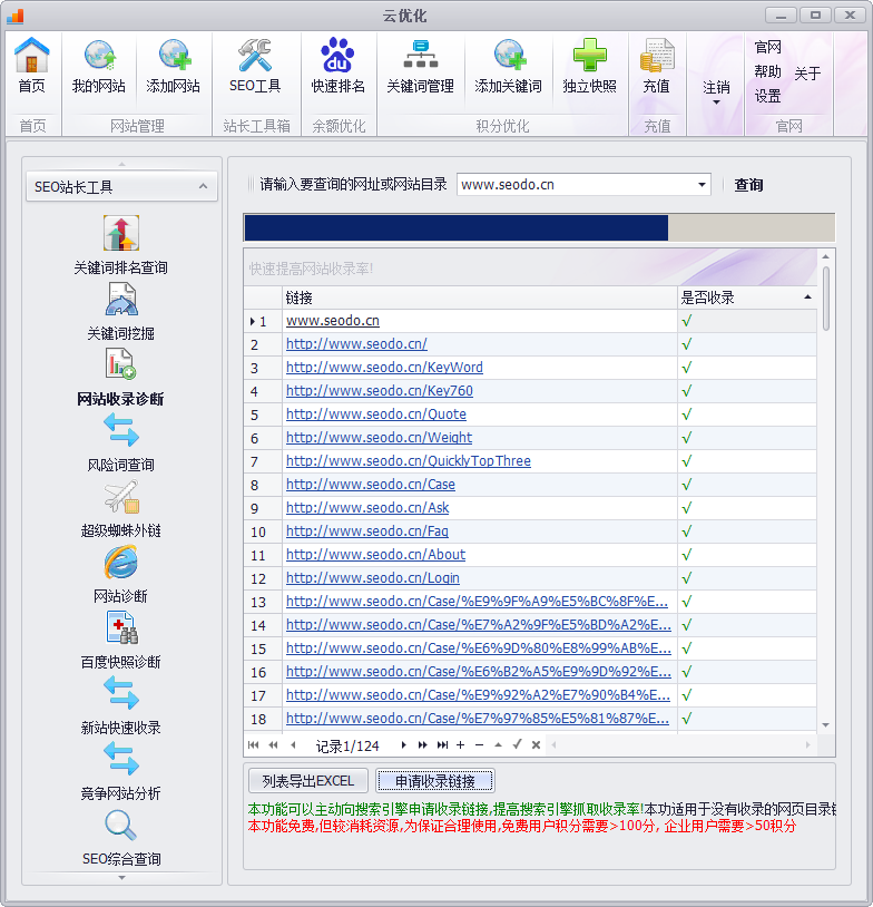 網(wǎng)站診斷工具持續(xù)診斷網(wǎng)站SEO狀況,及時(shí)給出站內(nèi)SEO建議,讓網(wǎng)站更加符合百度優(yōu)化規(guī)則及關(guān)鍵詞排名規(guī)則