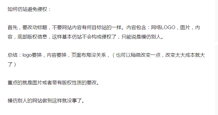 這是一個(gè)網(wǎng)絡(luò)信息高速發(fā)達(dá)的時(shí)代,也是一個(gè)抄襲和模仿侵權(quán)行為日益嚴(yán)重的時(shí)代,創(chuàng)新和開發(fā)的成本要遠(yuǎn)高于模仿,而中國互聯(lián)網(wǎng)監(jiān)管機(jī)制的不完善,導(dǎo)致網(wǎng)站侵權(quán)的違法成本幾乎為零。中國網(wǎng)站建設(shè)工程師Z大的陋習(xí)就是自己不動(dòng)腦筋,靠抄襲別人的作品來彌補(bǔ)自己的懶惰和智商上的缺陷,自己不能創(chuàng)新卻依靠竊取別人的成果來證明自己的價(jià)值。甚至還有人教導(dǎo)別人如何“合理”克隆他人的網(wǎng)站來避免侵權(quán)的煩擾,資深槍手表示:抄襲要看怎么抄了,創(chuàng)意是沒有辦法申請專利的,只要不抄到商標(biāo)和商標(biāo)標(biāo)識,功能一樣,源代碼外觀不完全一致,那就不算抄襲!可悲!小編一萬個(gè)草泥馬奔馳而過!