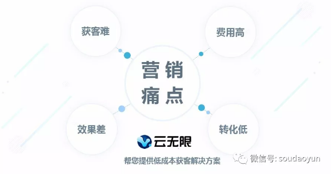 中小微企業(yè)通常面臨獲客難、費用高和轉(zhuǎn)化差的營銷痛點,如何低成本獲客是擺在企業(yè)老板心里的一個大難題??催^我文章的朋友絕大部分是宅男一枚,以學習SEO技術(shù)的為主的。今天我們不談技術(shù)只談思維,把我創(chuàng)業(yè)過程中所遇到的營銷難題以及如何解決的經(jīng)驗分享給大家。我是云營銷創(chuàng)始人邢慶濤,希望草根創(chuàng)業(yè)者能通過我的經(jīng)歷找到點靈感,少走點彎路,少交點續(xù)費,把主要精力放到公司的戰(zhàn)略層面及團隊管理上。