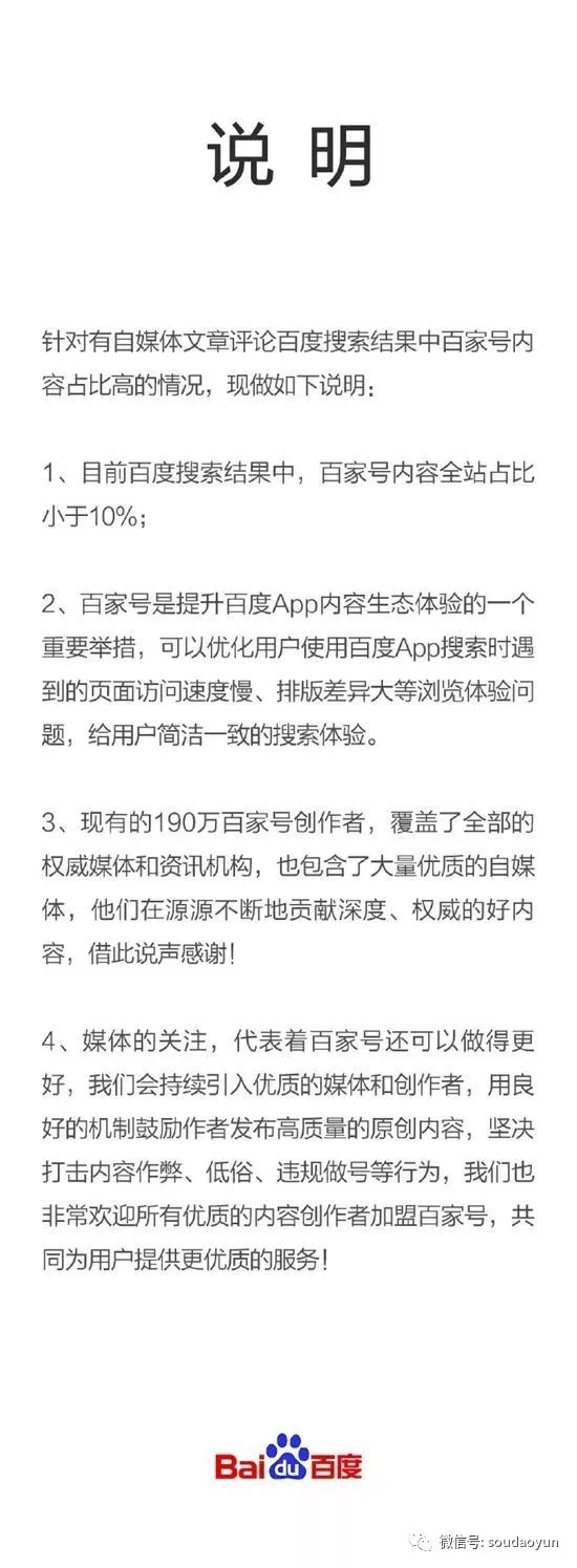 這篇《搜索引擎百度已死》的文能引起百度官方重視,足以證明該文章的影響力不可小覷。因?yàn)榘俣鹊诙炀桶l(fā)出了公告說(shuō)明。內(nèi)容如下: